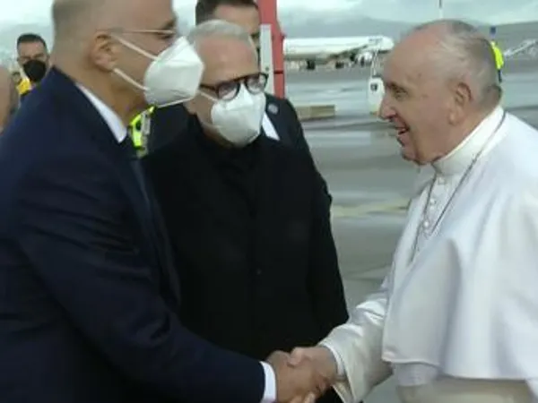 Suveranul Pontif a aterizat puţin după orală locală 11:00 (09:GMT) pe aeroportul din Atena. El urmează să rostească în cursul după-amiezii trei discursuri, în faţa autorităţilor civile, a primatului Bisericii Ortodoxe şi arhiepiscop de Atena Ieronim al II-lea şi a reprezentanţilor Bisericii Catolice din Grecia.