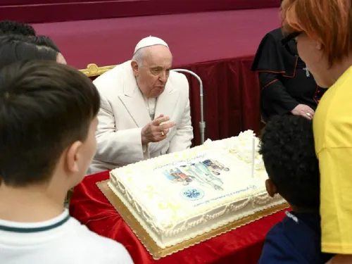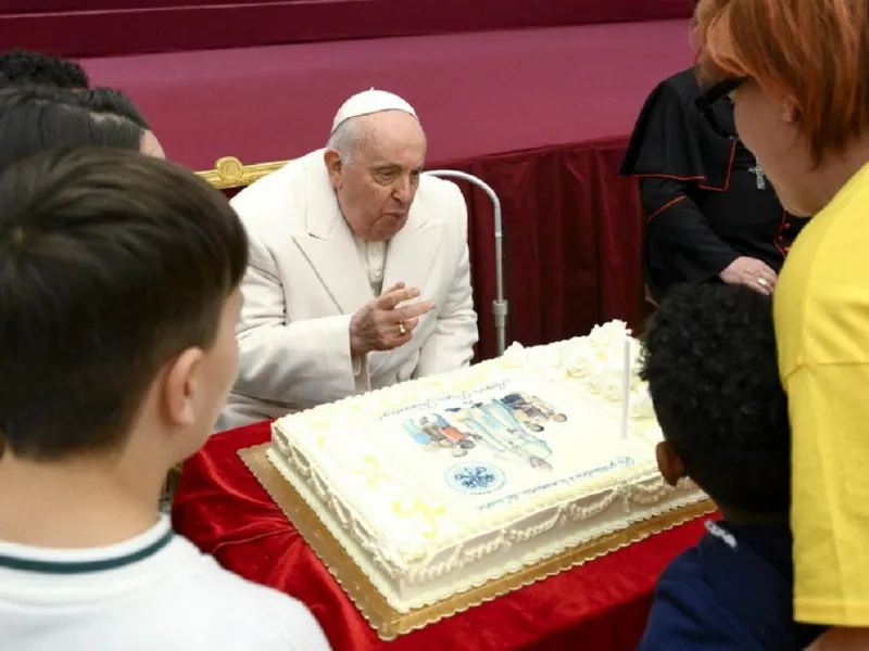 Papa Francisc a împlinit 87 de ani, duminică. Suveranul pontif a fost sărbătorit la Vatican în prezența a 200 de familii. Au fost momente artistice dar și tort și rugăciune.