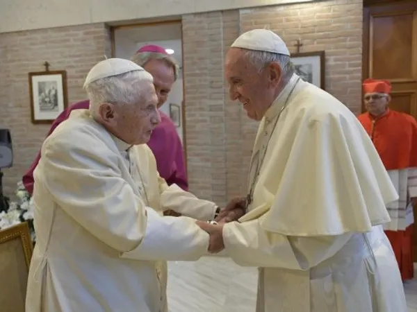 Încă din anul în care a fost ales ca Succesor al lui Petru, papa Francisc l-a vizitat de mai multe ori pe imediatul său predecesor, despre care a spus cu afecțiune că îl consideră ca pe ”un frate”, ”un părinte”, ”un bunic înțelept în casă”.