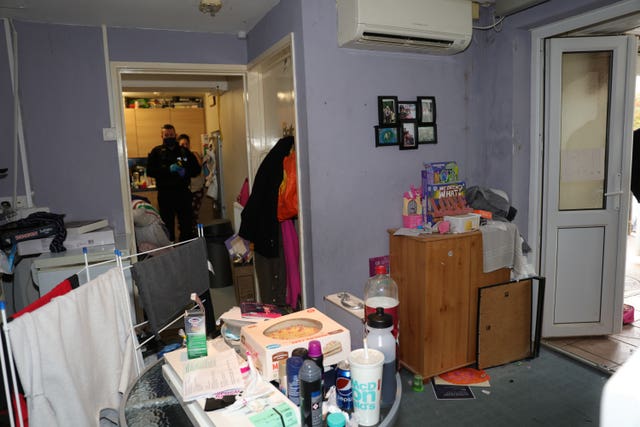 Era înconjurată de ambalaje de fast-food, iar dormitorul ei părea să fie folosit ca groapă de gunoi pentru aparate vechi, inclusiv o friteuză murdară și un aparat de spălat cu presiune defect.