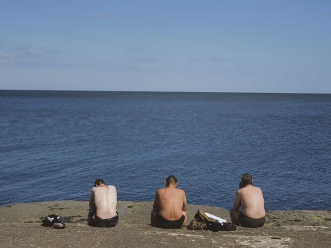 Deschiderea plajelor este o pauză binevenită de la război pentru oamenii care înoată şi fac plajă.