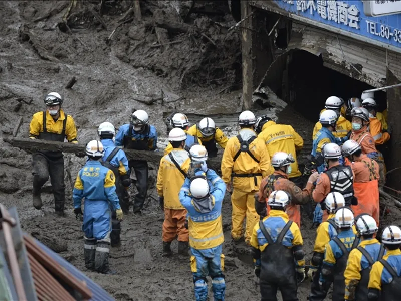 1.500 de salvatori caută printre ruinele caselor distruse de valul de noroi și stânci care s-a abătut peste stațiunea situată la 90 de kilometri sud-vest de capitala Tokyo, potrivit radiodifuziunii publice NHK.