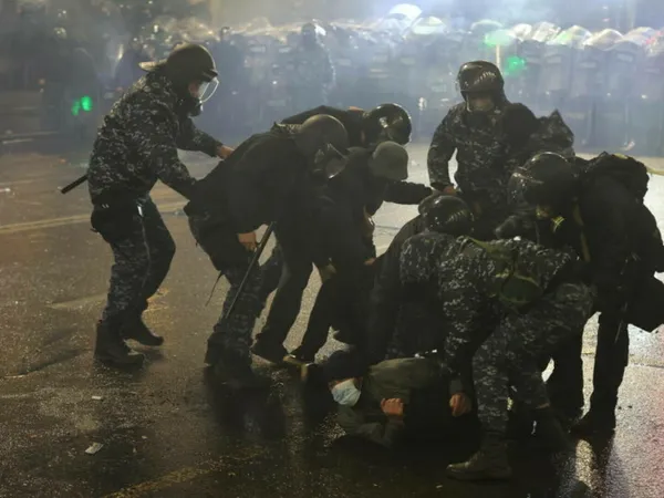 Poliţia georgiană a bătut şi arestat un lider al opoziţiei miercuri, în timpul unei descinderi la birourile partidului său, pe fondul valului de proteste antiguverntale şi al ameninţărilor cu represiunea din partea prim-ministrului ţării.
