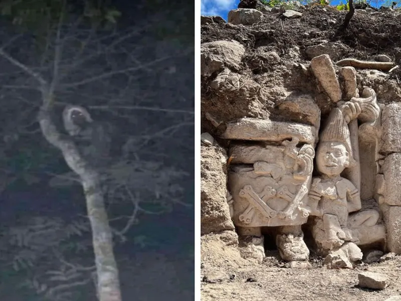 Les comparto dos fotos de nuestra supervisión a las obras del Tren Maya: una, tomada por un ingeniero hace tres días, al parecer de un aluxe; otra, de Diego Prieto de una espléndida escultura prehispánica en Ek Balam. Todo es místico. pic.twitter.com/Tr5OP2EqmU