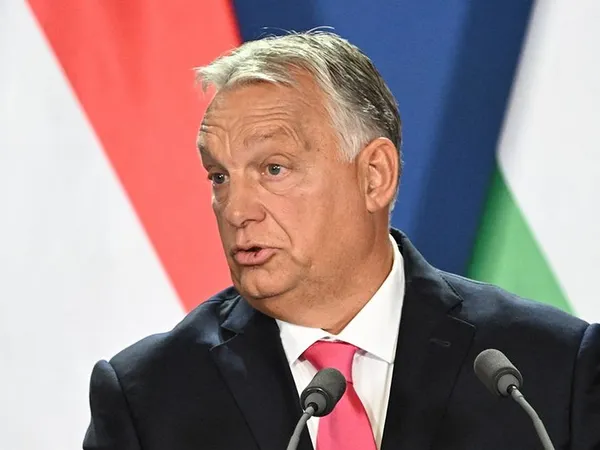 Viktor Orban vorbește la o conferință comună cu premierul Luxemburgului, la Mănăstirea Carmeliților - Foto: Profimedia Images