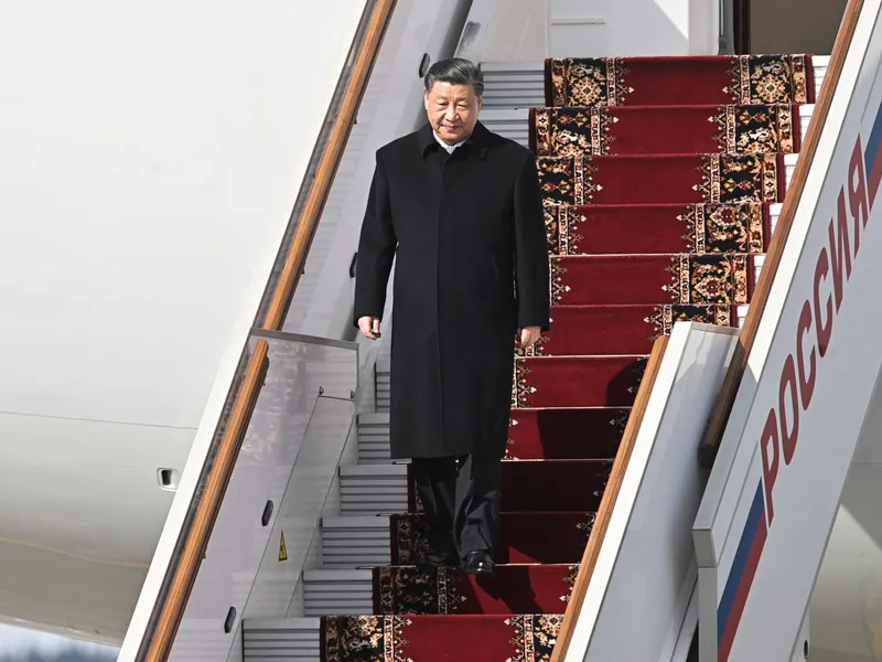 Tocmai l-am văzut pe liderul chinez Xi Jinping aterizând la Moscova, unde a fost întâmpinat de o fanfară militară și de vicepremierul rus Dmitri Cernîșenko, menționează BBC