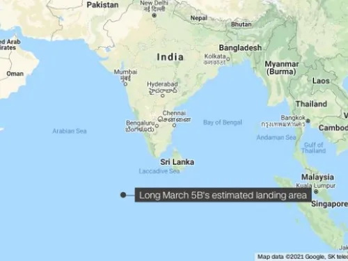"Conform monitorizării şi analizei, la 10.24 (02.24 GMT), la 9 mai 2021, primul etaj al rachetei Long March 5B a intrat în atmosferă", a transmis într-un comunicat Biroul chinez de inginerie spaţială, furnizând coordonatele unui punct situat în Oceanul Indian, în apropiere de Maldive, relatează DPA şi AFP.
