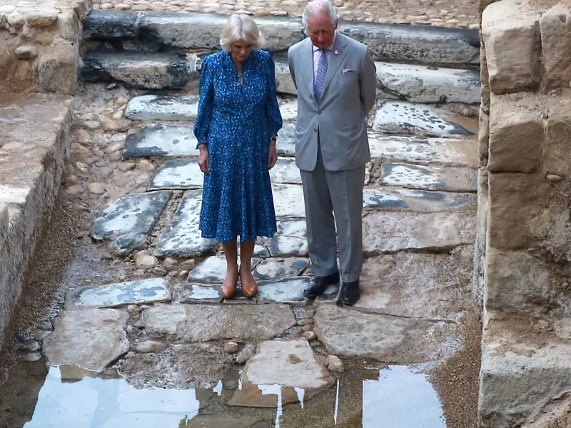 Prinţul Charles şi soţia sa, Camilla, au vizitat marţi locul de pe râul Iordan unde se crede că Iisus a fost botezat, relatează Reuters.