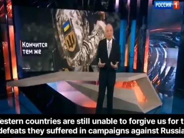 Unul din propagandiștii cei mai înrăiți ai Kremlinului intoxică publicul din Rusia cu cele mai abjecte minciuni. Ultima minciună se referă la faptul că europenii susțin Ucraina, fiind supărați din cauza înfrângerilor pe care le-au suferit în fața Rusiei de-a lungul secolelor.