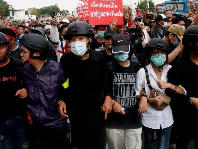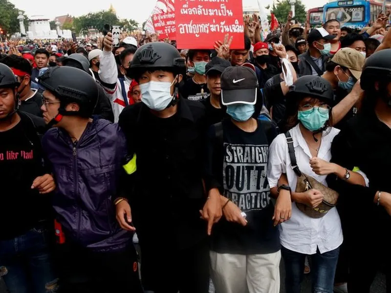 Mii de protestatari au mărşăluit miercuri spre sediul guvernului de la Bangkok, cerând demisia lui Prayut şi reformarea monarhiei thailandeze. Mulţi dintre demonstranţi s-au retras înainte de miezul nopţii, după ce poliţia a avertizat că vor fi îndepărtaţi cu forţa. Unii au rămas însă peste noapte în faţa complexului de clădiri unde se află biroul premierului.