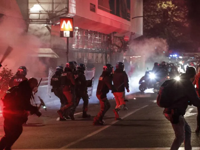 Gloatele furioase au scandat „Libertate” în timp ce au intrat în confruntări cu polițiștii. Aceste tensiuni și proteste violente vin după un val de alte proteste, pașnice însă, în mai multe orașe mari din țară – în Treviso, Trieste, Roma, Napoli, Salerno și Palermo.