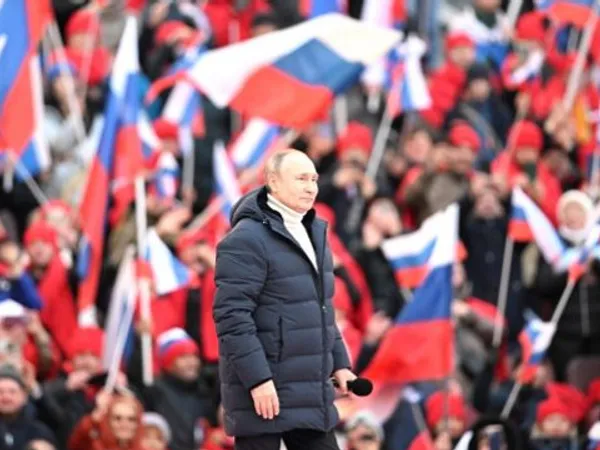 Putin a urcat pe scena de pe stadionul Cupei Mondiale Lujniki din Moscova pentru a marca cea de-a opta aniversare a anexării ilegale a Crimeei de către Rusia în 2014. În mijlocul discursului live, Putin a dispărut brusc, imaginea trecând brusc la cântărețul Oleg Gazmanov și un cor ce intona cântece patriotice.