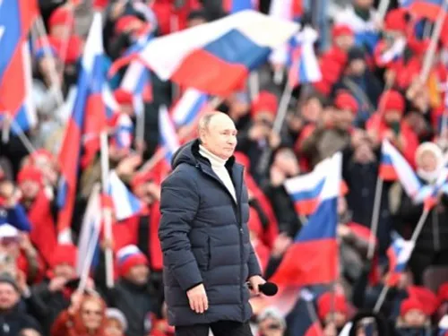 Putin a urcat pe scena mitingului de propagandă de la Moscova în geacă Loro Piana, de 12.000 €