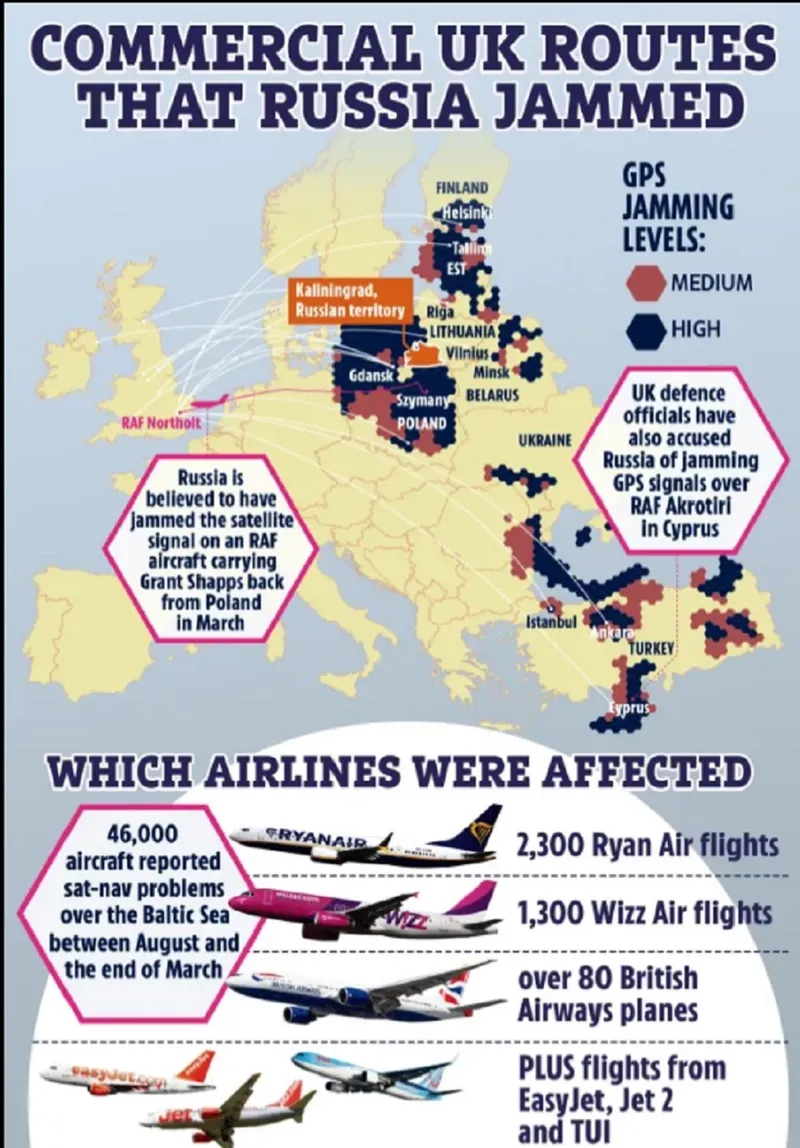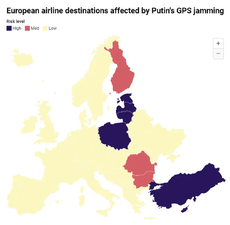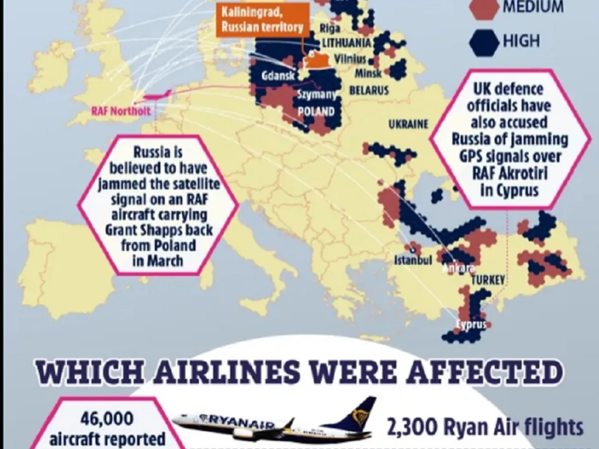 Rusia este suspectată că a lansat atacuri electronice „extrem de periculoase” împotriva a mii de zboruri de linie, susțin surse din aviație. Punctele fierbinți de bruiaj au fost în Marea Baltică, Marea Neagră și estul Mediteranei
