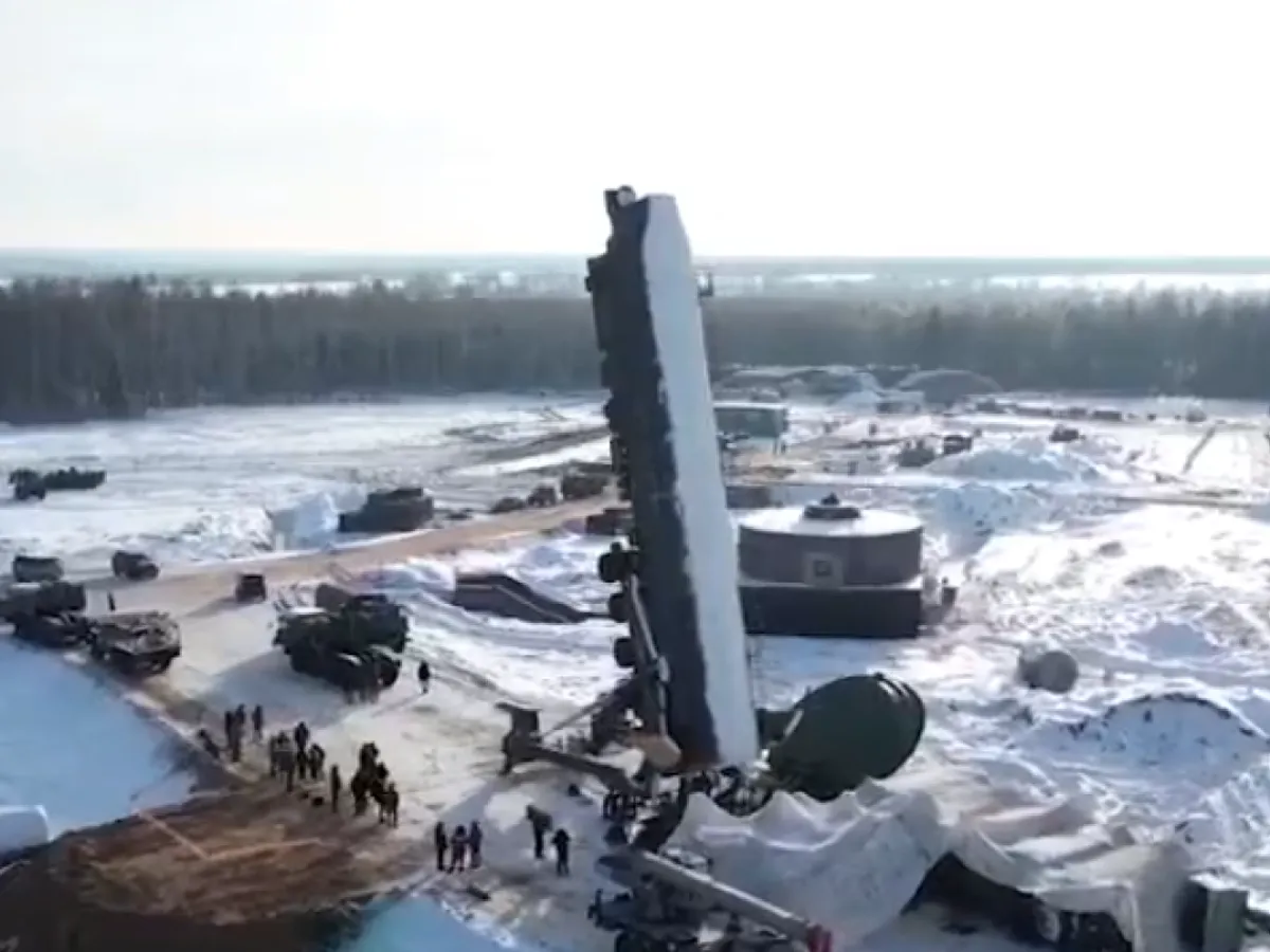 O înregistrare video terifiantă publicată de armata lui Putin arată cum o rachetă strategică Yars este pregătită la complexul militar Kozelsk, care se crede că se află undeva la sud-vest de Moscova.