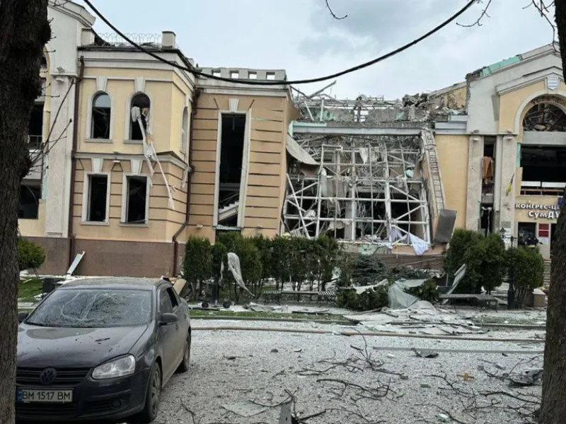 Procuratura din Sumî a confirmat că rachetele au distrus complet centrul pentru drepturile omului și au avariat grav mai multe clădiri din zonă.