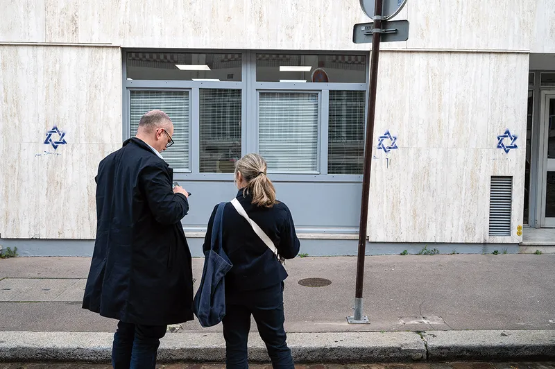 Steaua lui David, simbolul religiei evreiești și al statului Israel, a fost aplicată pe mai multe clădiri din Paris - Foto: Profimedia Images