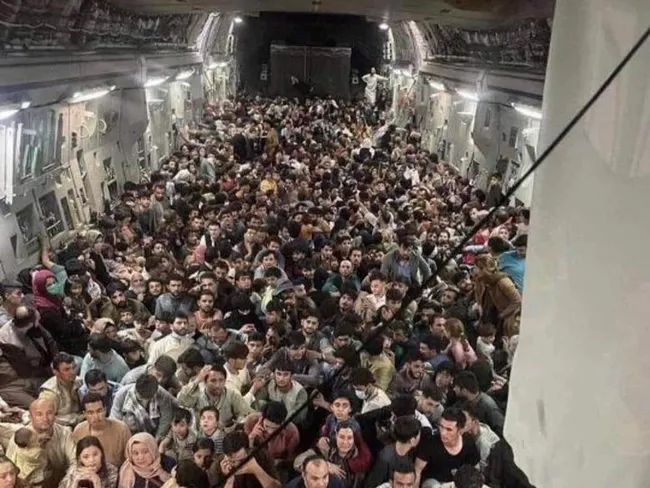 FOTO 640 de afgani, înghesuiți într-un avion american, salvați din calea talibanilor