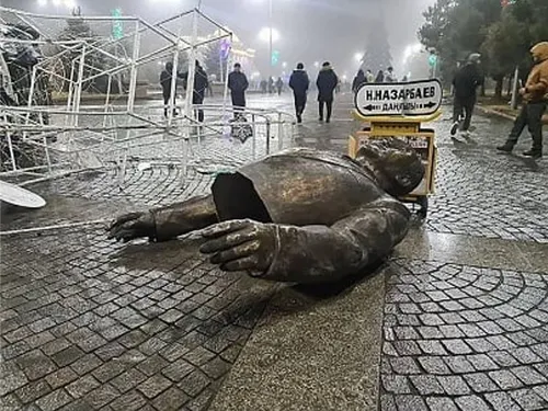 Demonstranții din Kazahstan s-au lansat în cele mai aprige proteste din epoca post-comunistă, revărsîndu-și furia pe însemnele dictatorului Nursultan Nazarbaev, care nu mai e președinte de trei ani, dar conduce din umbră, fiind „primul oligarh” al țării.