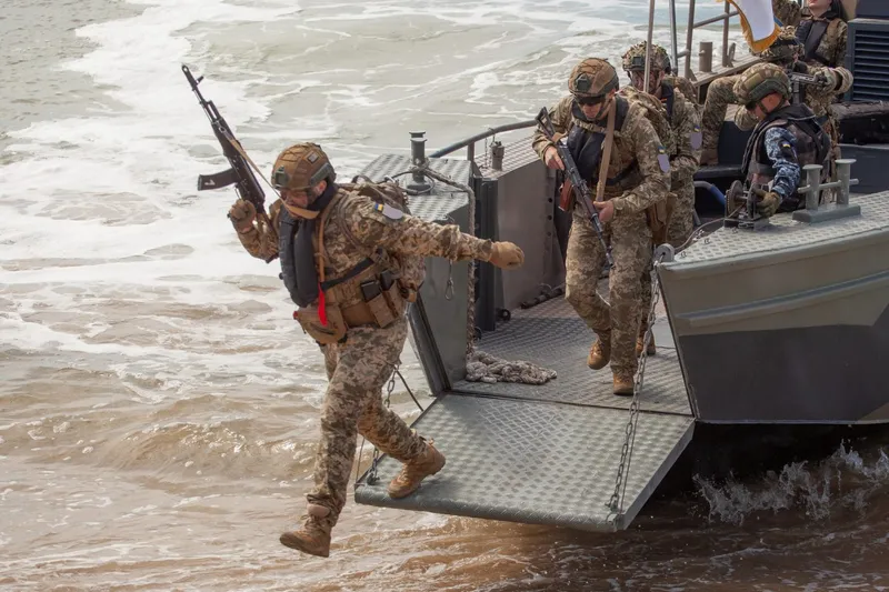 România a antrenat trupe ucrainene de debarcare în Crimeea. Putin întărește Podul Kerci cu barje. În mai 2024, Marina Ucraineană a efectuat un exercițiu de debarcare a trupelor pe o coastă neechipată folosind trei bărci de asalt rapid de tip Uisko 300 -Watercat M11 subseria U300