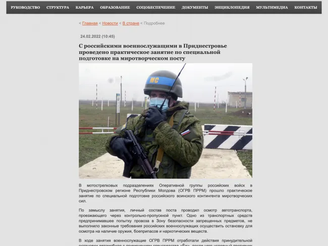 „În divizia motorizată de puşcaşi a Grupului Operaţional al Forţelor Ruse din regiunea transnistreană a R. Moldova au avut loc exerciţii de pregătire practică specială a contingentului militar rus al forţelor de menţinere a păcii”, scrie în comunicatul publicat pe site-ul oficial al Ministerul rus al Apărării, citat de ZdG.