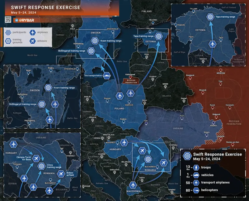 „De fapt, Alianța testează gradul de pregătire a unităților sale de a intra rapid în zona de conflict folosind nu numai componenta aeriană, ci și componentele feroviare, maritime și rutiere, ceea ce vedem în etapele inițiale ale Swift Response cu transfer de forțe în Suedia, Estonia și România.”