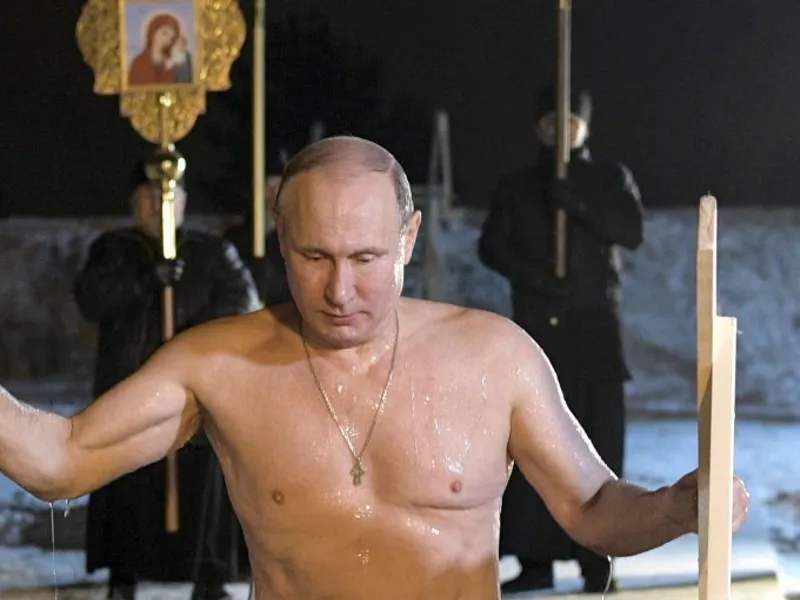 Televiziunea de stat rusă a difuzat imagini cu liderul de la Kremlin, scoțându-și cojocul de oaie pentru a intra în apele înghețate și scufundându-se de trei ori, la o temperatură de minus 14 grade Celsius.
