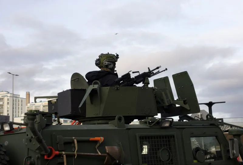 Un vehicul blindat al armatei finlandeze păzeşte Podul Merihaka - Foto: Profimedia Images