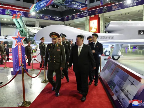 În cadrul vizitei, Kim a condus personal un tur al expoziției, prezentând noile arme și echipamente militare. Fotografiile oficiale au arătat prezența rachetelor balistice nord-coreene în lansatoare de transport cu mai multe axe, precum și o nouă dronă, potrivit Reuters.