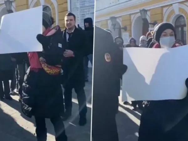 Police in Nizhny Novgorod arrested a demonstrator today for protesting with a blank sign. Welcome to Russia in 2022. pic.twitter.com/YprwDqex8V