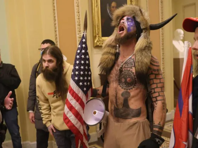 Printre suporterii lui Donald Trump, prezenți la asaltul asupra Capitoliului, s-a remarcat imediat un personaj bizar, un bărbat gol de la brâu în sus, pictat pe față și cu o căciulă de blană, cu coarne, pe cap.