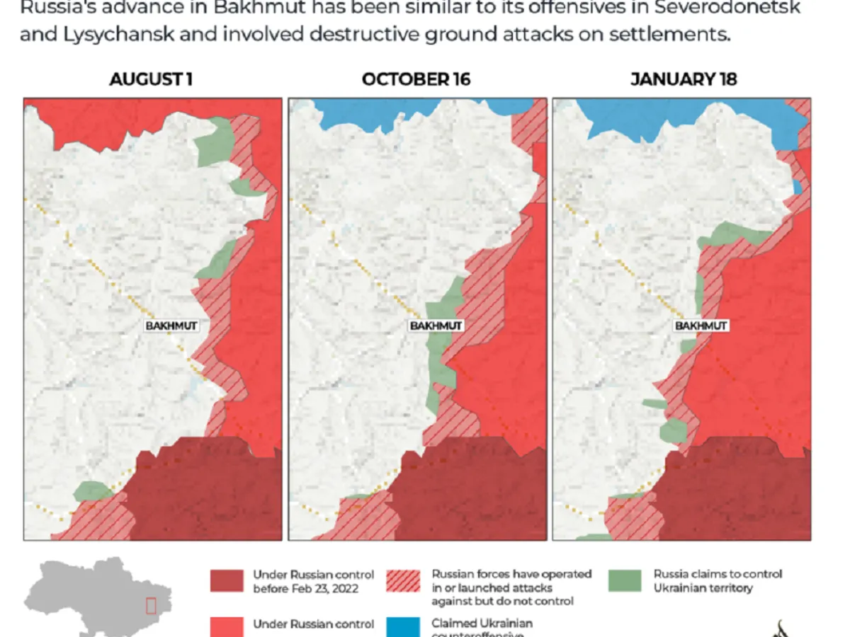 Șase luni de lupte crâncene pentru Bakhmut. Cum s-a mutat linia frontului (hartă)