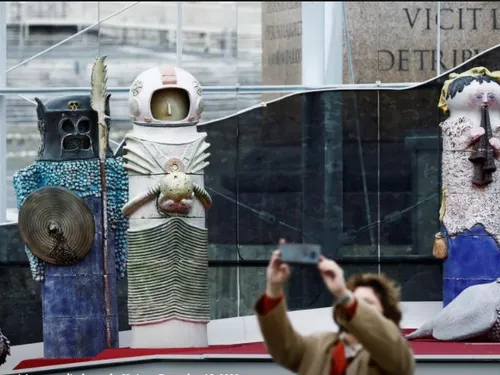 Piața Sf. Petru din Vatican a găzduit de-a lungul anilor și câteva scene ale Nativității mai puțin „ortodoxe”, dar anul acesta figurinele par să fi aterizat din spațiul cosmic, spre nemulțumirea majorității italienilor.