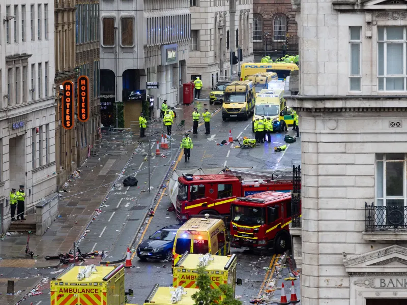Scene șocante la Liverpool: mașină intrată în fani, un bărbat reținut. Răniți transportați la spital. Evenimentul a atras sute de mii de persoane pe străzile orașului, pentru a-i vedea pe jucători în autobuze decapotabile.