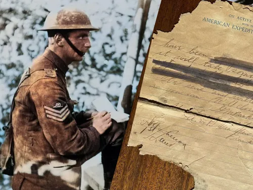 În timp ce făceau ordine prin lucrurile vechi lasate de bătrâni în casă au descoperit o scrisoare de la un soldat american trimis în Franța în 1917. Rămășițele hârtiei, trimisă inițial "La datorie în serviciul activ în Corpul Expediționar American", spuneau așa:
