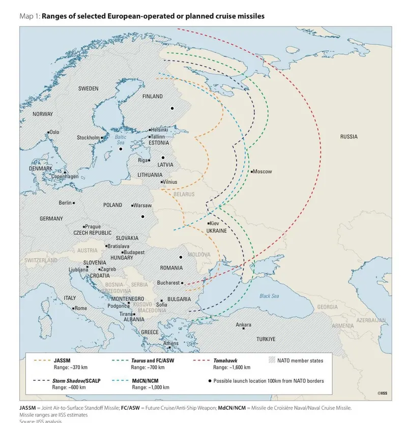 Alte tipuri de rachete de croazieră disponibile în țările europene, precum Storm Shadow/Scalp-EG, Taurus, MdCN și AGM-158 JASSM, vor putea lovi ținte pe teritoriul Federației Ruse, fără a ajunge la Moscova, doar dacă vor fi lansate din Marea Baltică și din spațiul aerian al țărilor baltice.