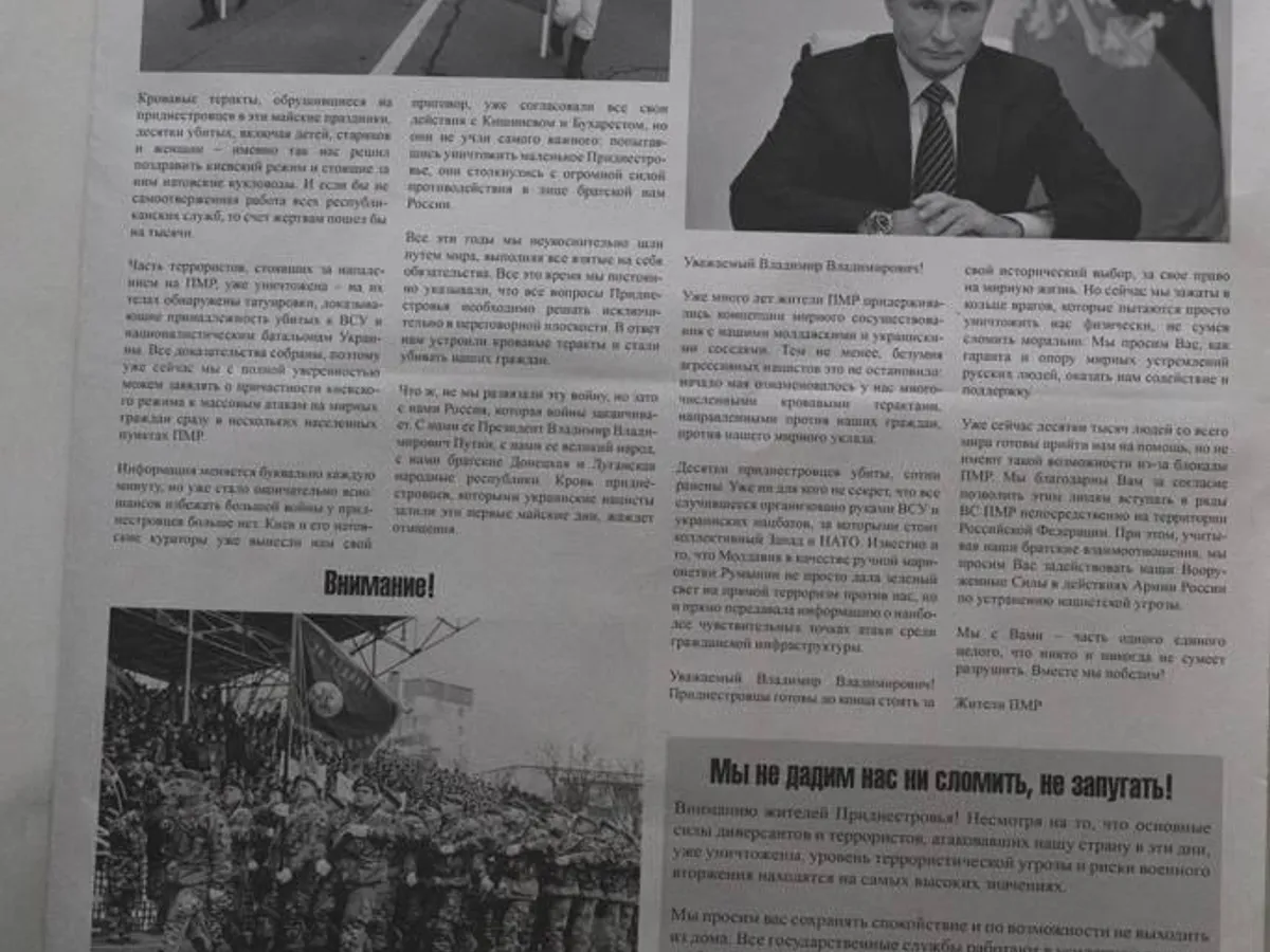 „Nerecunoscuta Transnistrie continuă să se pregătească de război împotriva Ucrainei. Un tiraj mare al ziarului transnistrean, din 2 mai 2022, a fost tipărit pe teritoriul regiunii transnistrene a Moldovei. Materialul central al ziarului este <