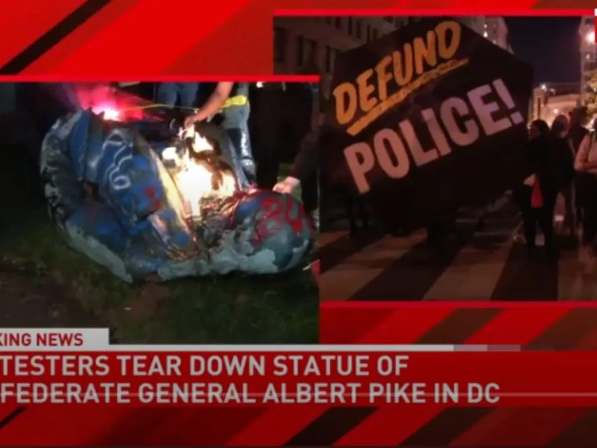 Televiziunile de știri au arătat imagini cu statuia generalului sudist Albert Pike doborâtă de pe soclu cu ajutorul unei frânghii de câteva zeci de manifestanţi care scandau sloganul 'Black lives matter'.