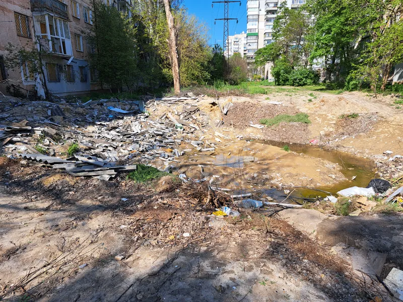Am mers într-un loc unde un crater cu o rază de vreo 10 metri se căsca între două blocuri de locuințe apropiate. Puțin dacă ar căzut mai la dreapta sau mai la stânga cu câțiva metri, racheta ruseasă ar fi zdrobit unul dintre blocuri. Efectele exploziei asupra clădirilor se văd însă, balcoanele fiind contorsionate, și toate ferestrele sparte și acoperite acum cu placaje de lemn.