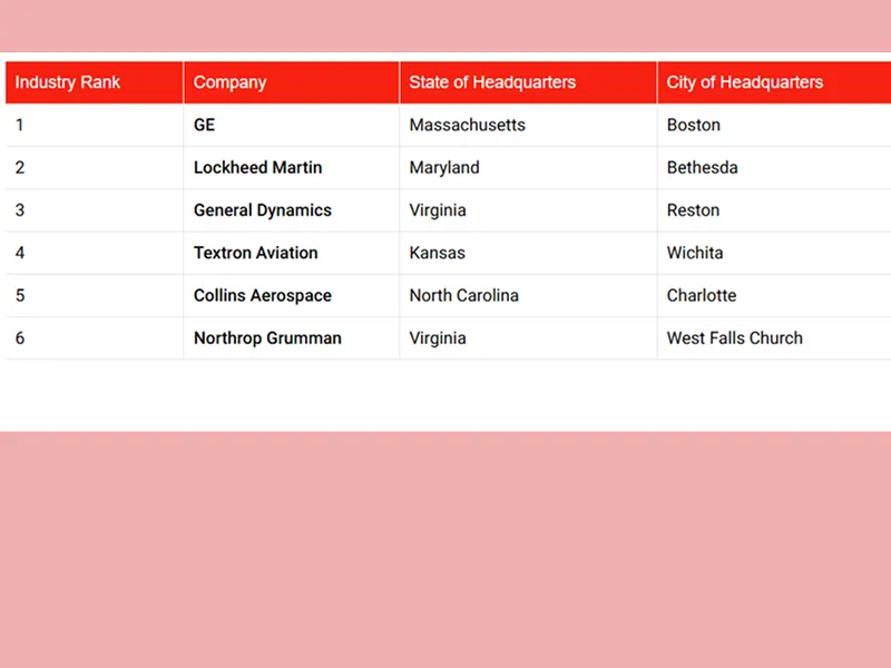 În acest an, General Electric (GE) ocupă primul loc în categoria Aerospațială și Apărare, fiind recunoscută pentru stabilitatea și inovațiile sale în domeniu.
