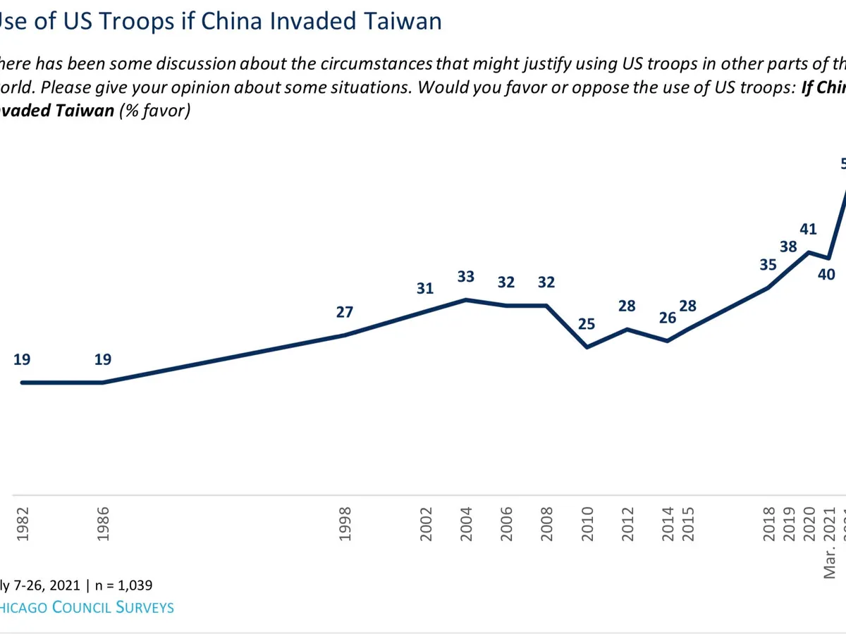 Un sondaj al Chicago Council on Global Affairs, un think-tank înființat în 1922, arată că, pentru prima oară din 1982, există o majoritate a americanilor care consideră că Taiwanul trebuie apărat militar în caz de intervenție a Chinei comuniste.