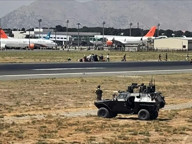 Luptătorii talibani înarmați au înconjurat aeroportul și au tras în aer pentru a dispersa mulțimile.