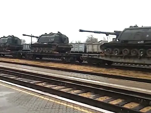 Trenuri încărcate cu cantități mari de echipamente militare rusești, inclusiv tancuri și alte vehicule blindate grele, precum și artilerie grea, au fost raportate spre granițele cu Ucraina.