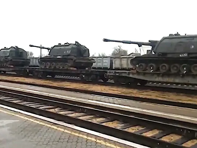 Înregistrările video și alte imagini arată deplasarea unor vehicule blindate și alte echipamente militare pe trenurile care se îndreptau spre sud-vestul Rusiei cel puțin de la 27 martie.