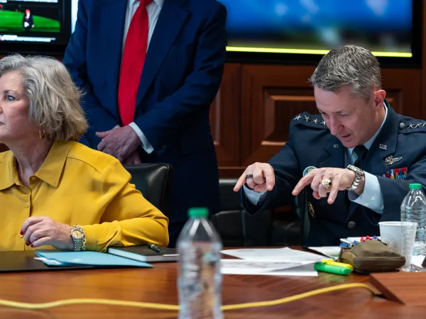 Șefa Statului Major Susie Wile și președintele Statului Major Interarme al SUA, Dan Caine, în Camera de Situații din Washington, în timp ce bombardierele americane executau atacurile asupra Iranului - Foto: Profimedia Images