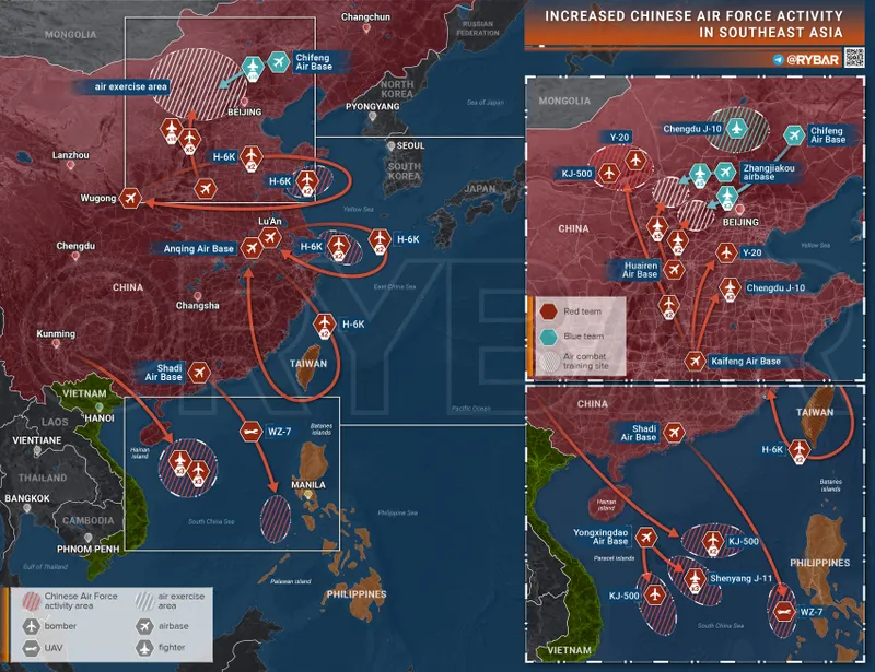 Ca răspuns la exercițiile regulate, zborurilor cu bombardiere strategice și a diferitelor operațiuni ale aeronavelor US Air Force, chinezii au devenit mai activi în mai multe zone simultan.