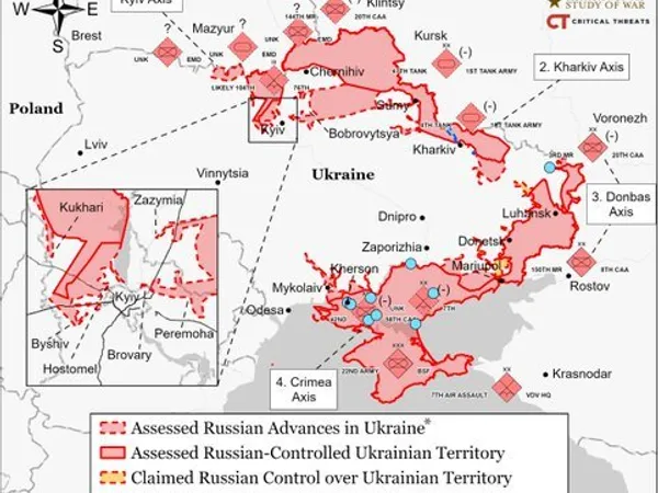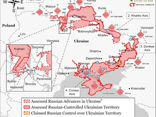 ISW a distribuit o hartă pe Twitter care arată trupele Rusiei înaintând spre vestul Ucrainei.