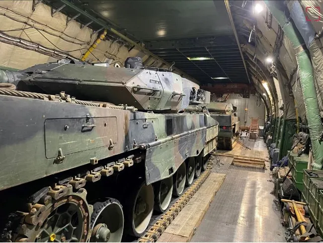 Rapoartele observatorilor indică o mare probabilitate ca Antonov să transporte tancuri Leopard 2A6 donate de Lisabona armatei ucrainene. Avioanele au zburat în Polonia în acea zi de la Oslo, o bază militară britanică de lângă Portsmouth, de la hubul transatlantic NATO Gander din Canada, o bază USAF în Delaware și bazele USAF în apropiere de orașele germane Wiesbaden și Ramstein.