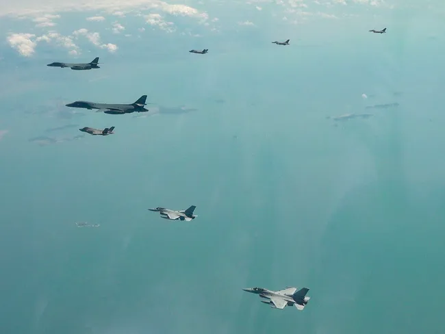 Cele două bombardiere supersonice au fost însoțite de avioane americane F-16 și avioane stealth sud-coreene F-35A, în cadrul unui antrenament combinat menit să testeze și să perfecționeze tacticile ofensive și defensive aeriene.