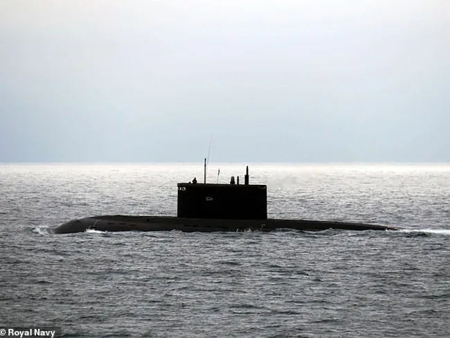 Submarinul, construit pentru Marina Sovietică în anii ‘80, a fost interceptat de navele de patrulă ale Royal Navy, HMS Tyne HMS Mersey.